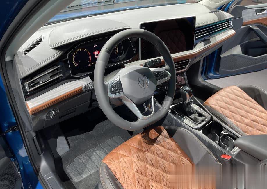 外观方面,新车采用大众最新家族化设计,更几何化、更精炼,轿跑姿态十足,颜值拉满。前脸配备大尺寸横幅式进气格栅,内部采用熏黑蜂窝状设计,搭配镀铬饰条勾勒轮廓,中间嵌入大众LOGO,精致感与运动感兼具,强化了车头的横向延展性,视觉效果更加宽阔、清晰;两侧锐利的LED大灯组轮廓与海外版速腾相似,灯腔内部配备LED日间行车灯与透镜,照明效果出色,夜间点亮后辨识度极高,下方贯穿式进气口进一步拉宽车头视觉比例,搭配两侧雾灯区域的黑色饰板,强化运动氛围,前脸整体造型犀利动感,极具攻击性。车身侧面线条流畅舒展,严格遵循“家用黄金比例”,简洁整体的特征线配合舒展的型面变化,营造出越级的高级感,溜背式造型搭配微微上翘的“小鸭尾”设计,在保证后排头部空间的同时,勾勒出动感流畅的尾部线条,17英寸双色铝合金轮毂搭配黑色轮眉,提升行驶稳定性与颜值,车身尺寸为4702×1815×1484mm,轴距达2688mm,定位紧凑型轿跑,采用4门5座布局,车内空间宽敞,完全满足日常家用与情侣出行需求。车尾造型饱满动感,高辨识度的动感交互贯穿式后组合尾灯,点亮后显著提升了整车的科技感与档次感,搭配下方双边共两出真实排气与黑色装饰套件,将稳重气质与运动氛围完美融合。